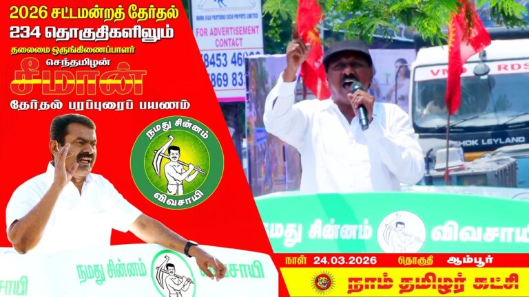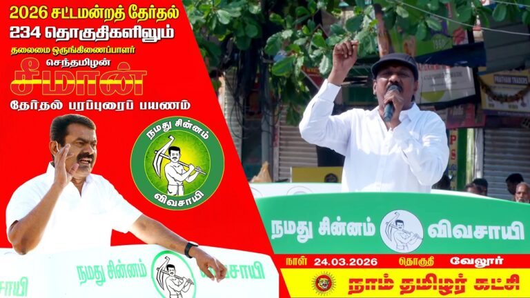 Contact us to Add Your Business எங்களின் உயிரோடும் உணர்வோடும் கலந்து வாழுகின்ற அன்பு உறவுகள் அனைவருக்கும் வணக்கம்! சட்டமன்ற தேர்தல் 2026 பங்குனி 10 | 24-03-2026 | செவ்வாய் கிழமை அன்று தலைமை ஒருங்கிணைப்பாளர் செந்தமிழன் சீமான் அவர்களின் முதற்கட்ட பரப்புரை இரண்டாம் நாள் பயணத் திட்டம். காலை 10.30 – 11.00 மணி – வாகனப் பரப்புரை – வேலூர் காலை 11.30 – 12.00 மணி – வாகனப் பரப்புரை […]